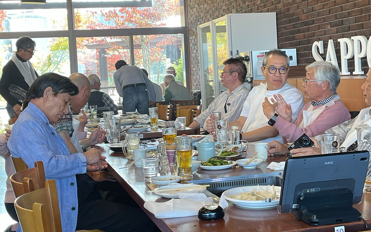 赤レンガの趣溢れるレトロモダンなホールでサッポロ生ビールと焼肉食べ放題を満喫。焼き奉行活躍!ワイワイ楽しい昼食でした。こんなに食べ過ぎて夕食は大丈夫!?