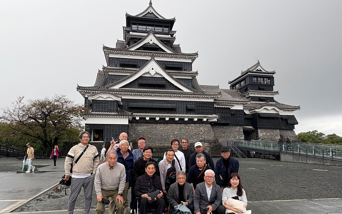 途中ちょっとしたハプニングがあり、巡回バスの中で仲間想いの会話が飛び交い、雨の中皆でびしょ濡れになりながら、熊本城内を歩いたことは、とてもいい想い出になりました。