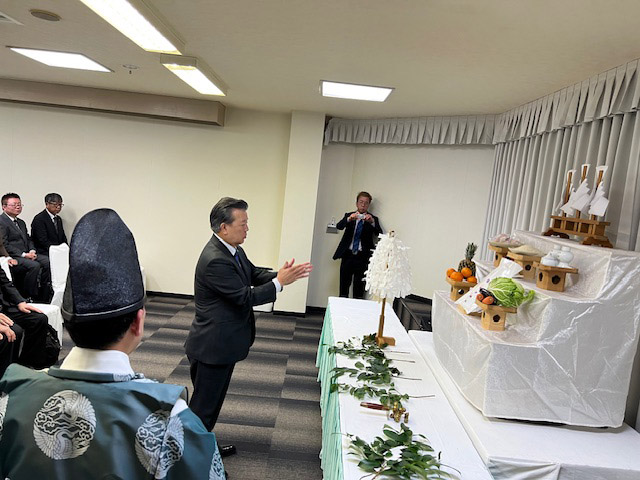 飯盛神社より宮司様をお招きしての神事が始まりました。