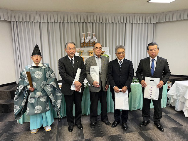 神事を終えて、松尾功会員、野口会員、西山会員、平倉会長(左より)